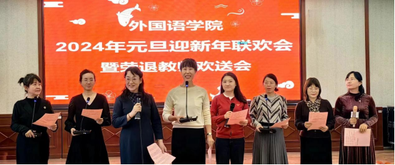 全体教职工在逸夫楼一楼报告厅举行了主题为“辞旧迎新·共话友情&凝心聚力·共创辉煌”的“迎新年联欢会暨荣退教师欢送会”。