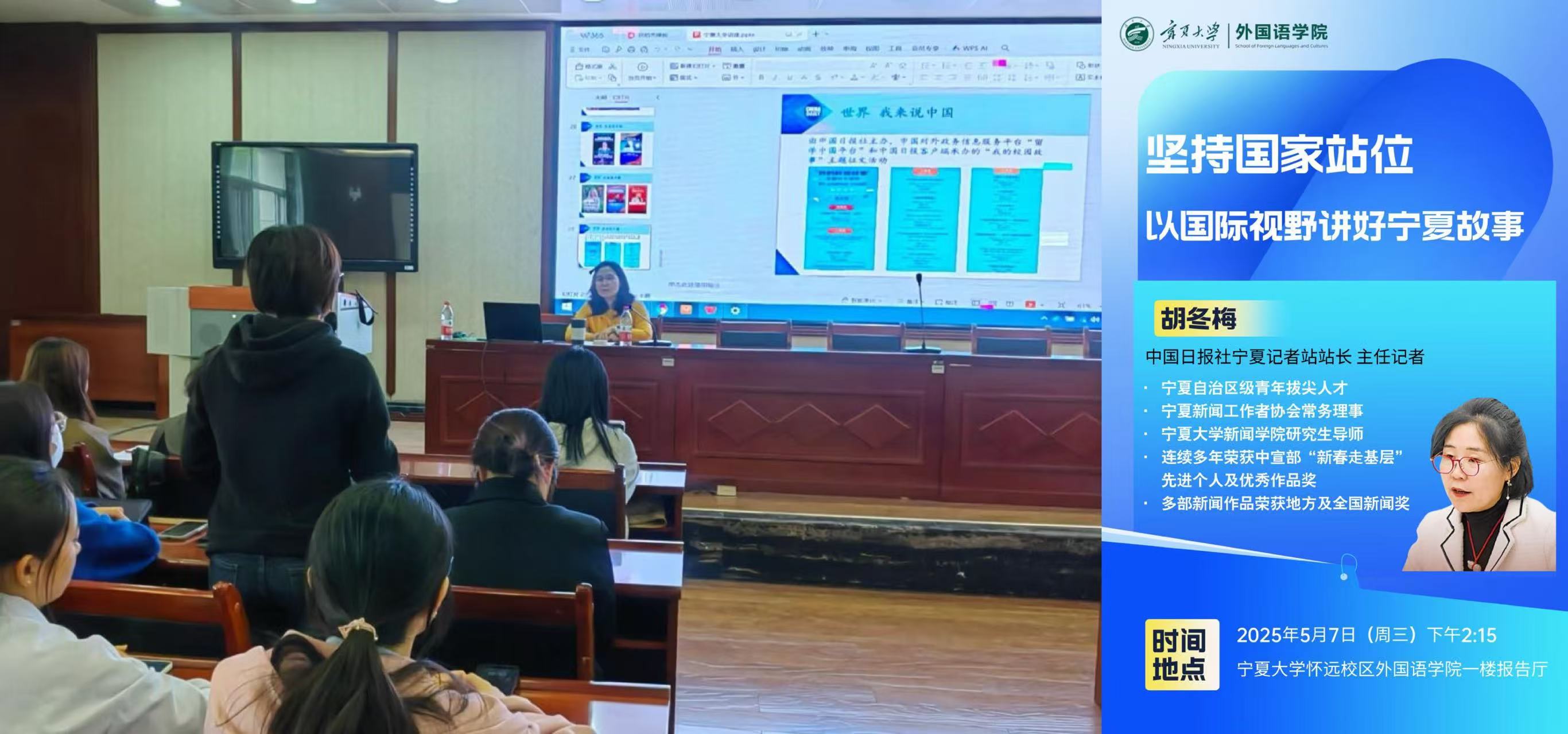 为深化英语翻译专业建设,探索国际传播背景下讲好地方故事的创新路径,5月7日下午,中国日报社宁夏记者站站长、主任记者胡冬梅应邀走进赌博游戏app