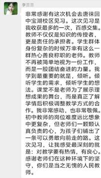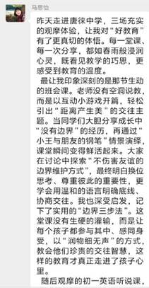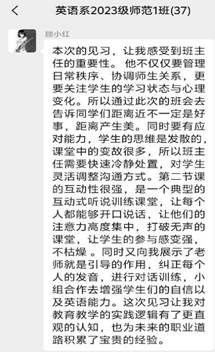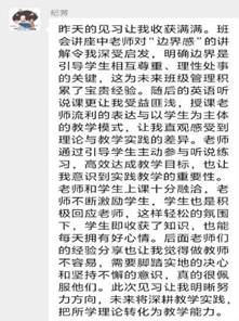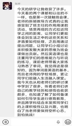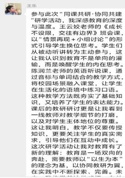 最令师范生感触深的是教研活动环节。在纳老师领学师德师风和新课标的相关文件后,七年级备课组长梁老师介绍了集体备课的经验和成果。在对陈润兰老师的展示课评课过程中,其他老师的点评真诚且有针对性,提出的五点建议让师范生看到一节课多次打磨后依然有提高的空间。赌博游戏app 师生积极参与研讨,Smith博士肯定了课堂活动的效果,李艳、牛林琳、于成龙、徐哲四位师范生也现场分享了这次见习的收获与感悟。