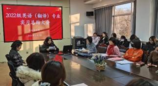 相关领导、实习指导老师、学部代表及2022级翻译专业全体实习生参加了会议。