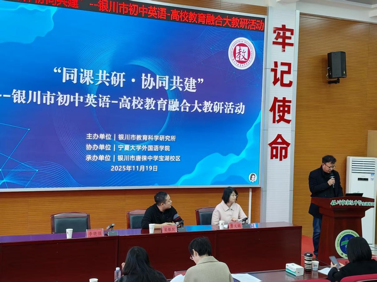 协办、银川市唐徕中学宝湖校区承办的“同课共研·协同共建:中学—高校英语教育融合教研活动”于11月19日下午在唐徕中学宝湖校区隆重举行。